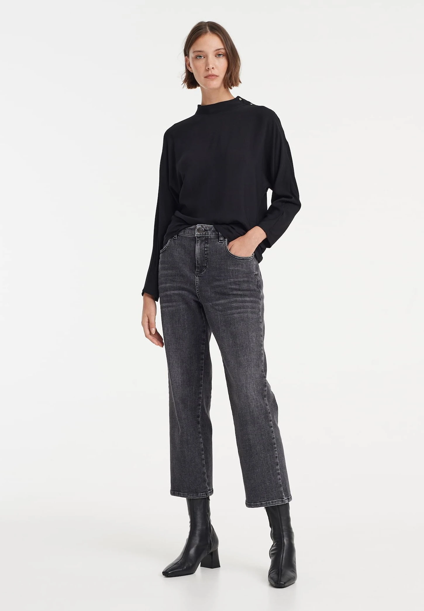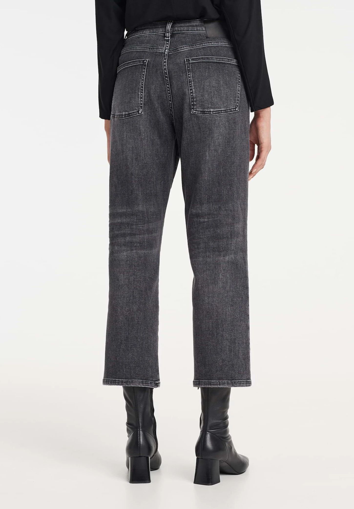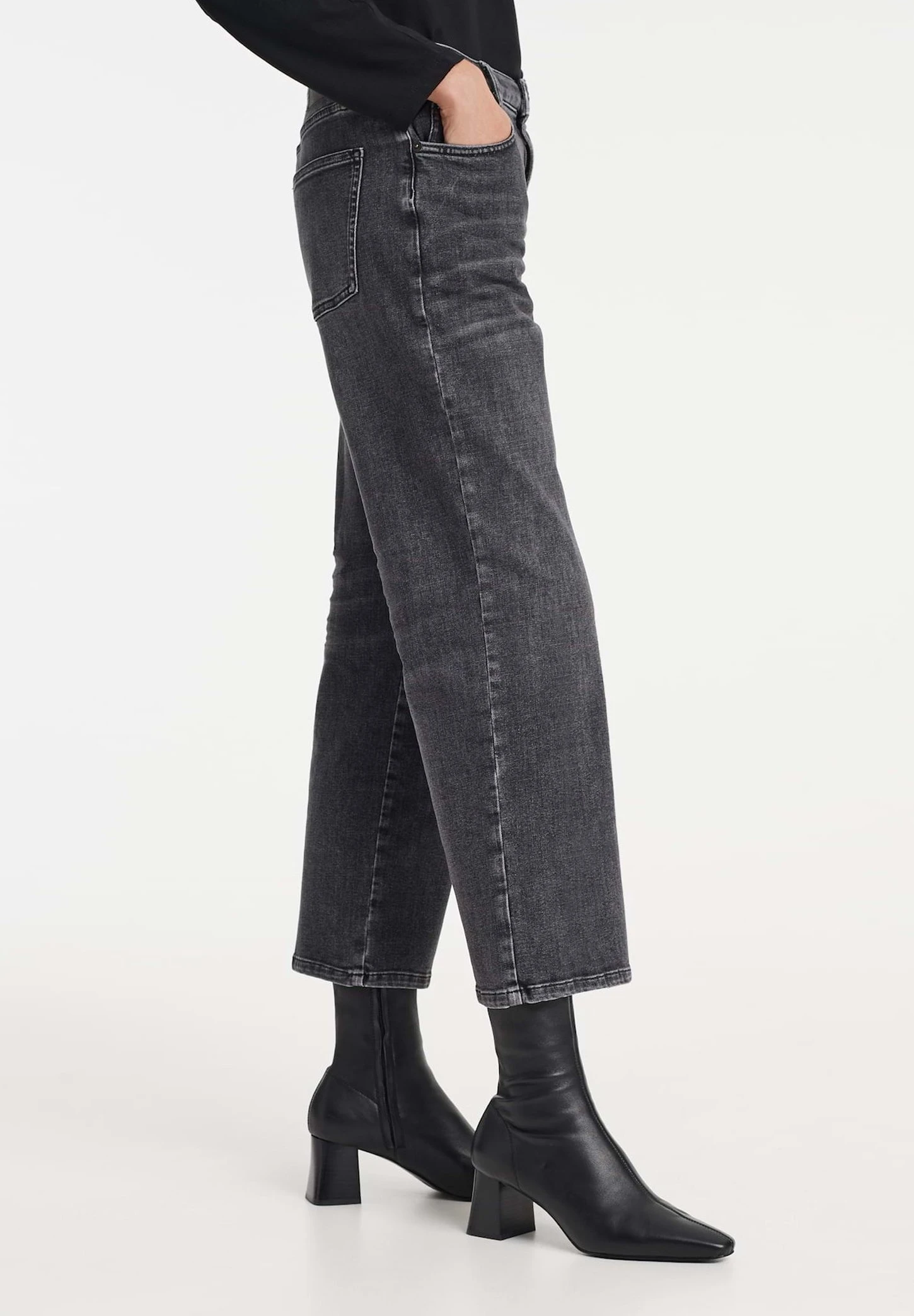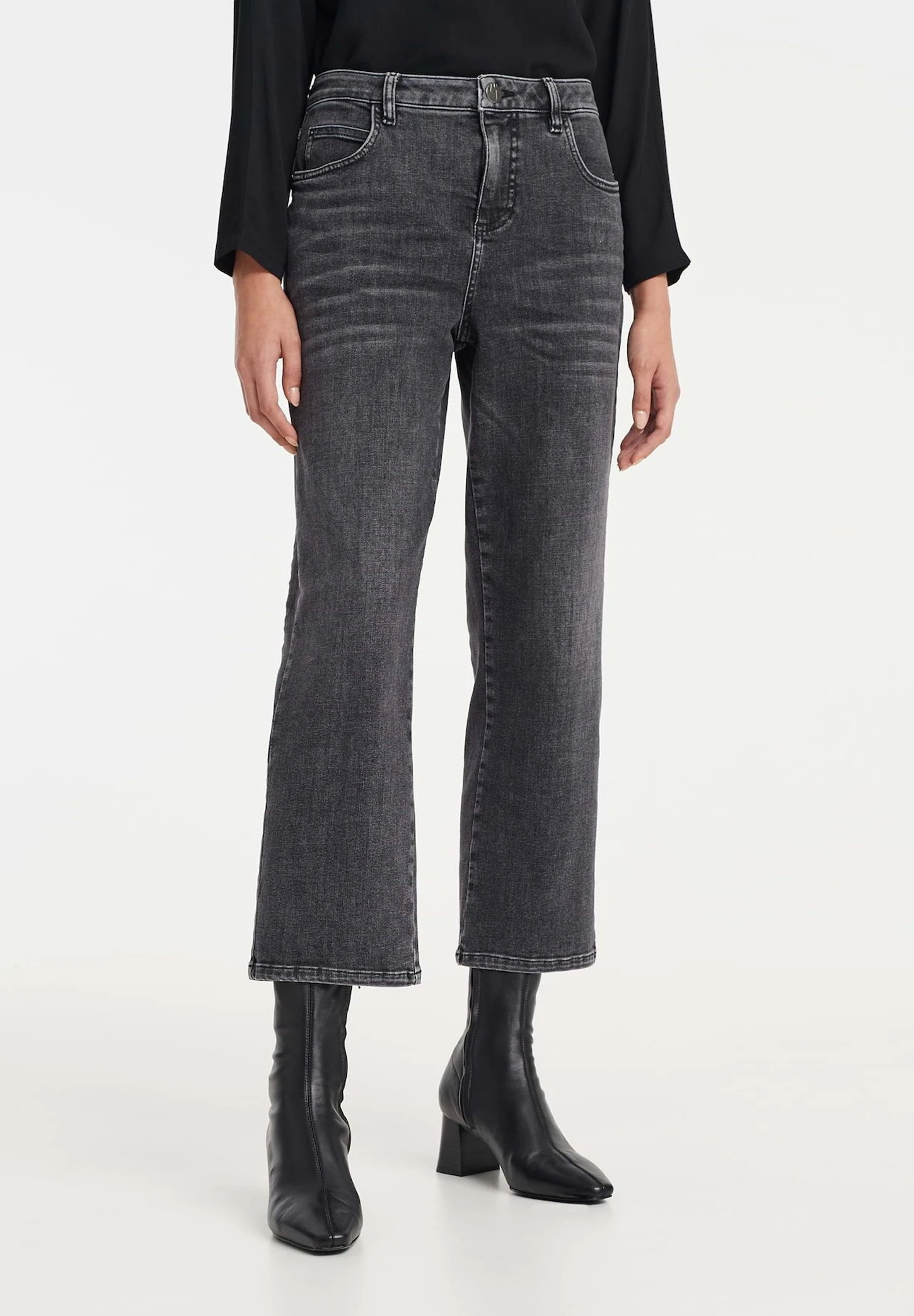 OPUS Lani Light Coal – Straight Leg Jeans – Stone Used Black